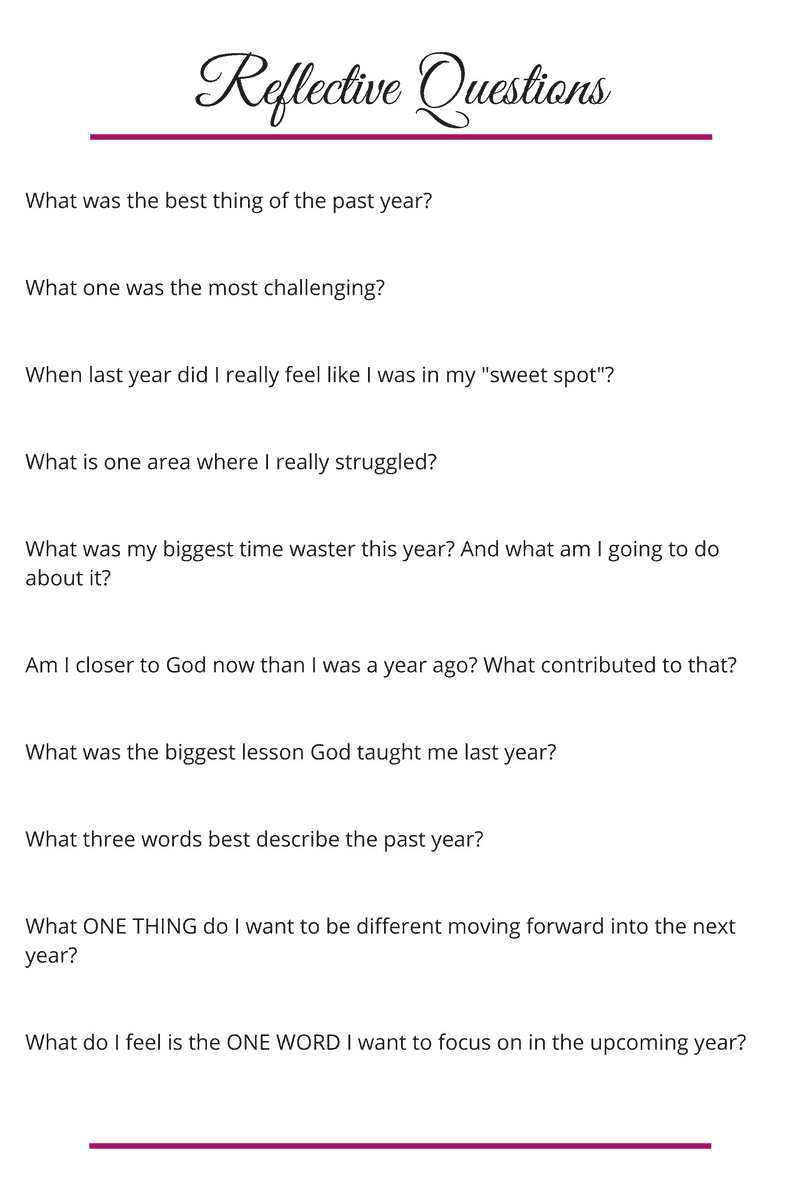 If you can in the next few days find some time to sit quietly, alone (I know a miraculous event if you’re a mom) and think about the past year. To get you going I included some questions I am asking myself this year in my Goal Planning Worksheet.Reflective Questions - Use to help plan goals for the new year and to evaluate past progress.