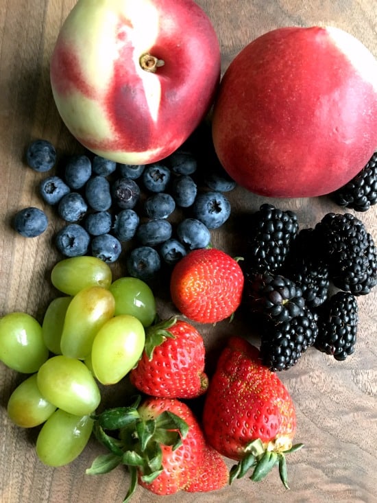 - Wash and cut all fruit and berries. The total amount of all prepared fruit should be close to 8 cups.