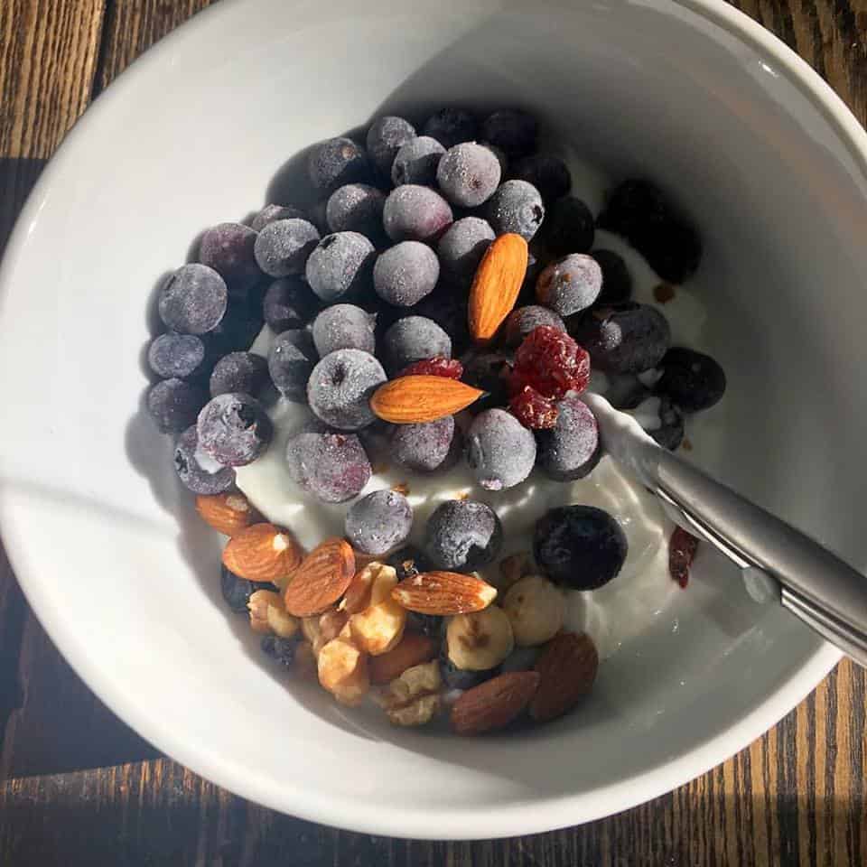 - 0 Fat Greek yogurt with 1/2 cup berries and 1/4 cup multigrain Cheerios