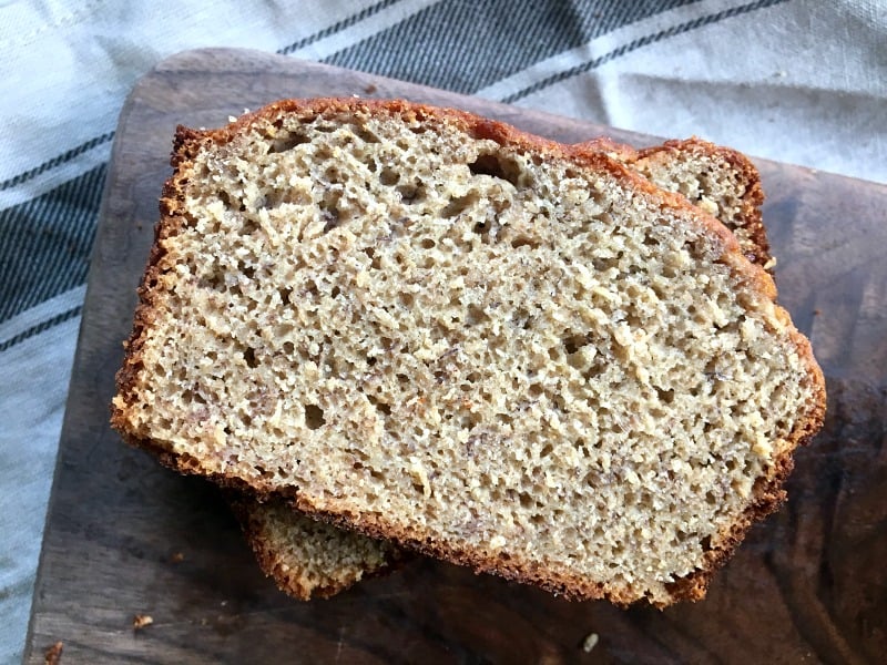 I love classic comfort foods that I can tweak to be healthier andย feel good about eating it and feeding it toย myย loved ones! The kiddos gobbled this up too! They both love bananas, but aren’t crazy about nuts, so we left them out; but adding chopped walnuts or pecans gives this bread some extra healthy fat and crunchy texture.