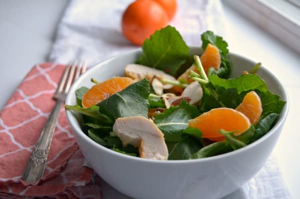 [tweetthis]Mandarin Chicken Salad loaded with greens, protein and the perfect amount of crunch! [/tweetthis]