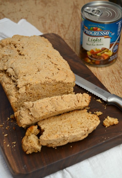 Enter the light line of soups from Progresso® and this easy beer bread recipe. I have had beer bread on my brain since trying some at a Christmas event and loving it. When I found out how easy they are to make I was totally intrigued and knew I had to give it a try! This bread is ridiculously easy to make and is so delicious! The perfect pairing for a bowl of soup on a cold winter’s day.